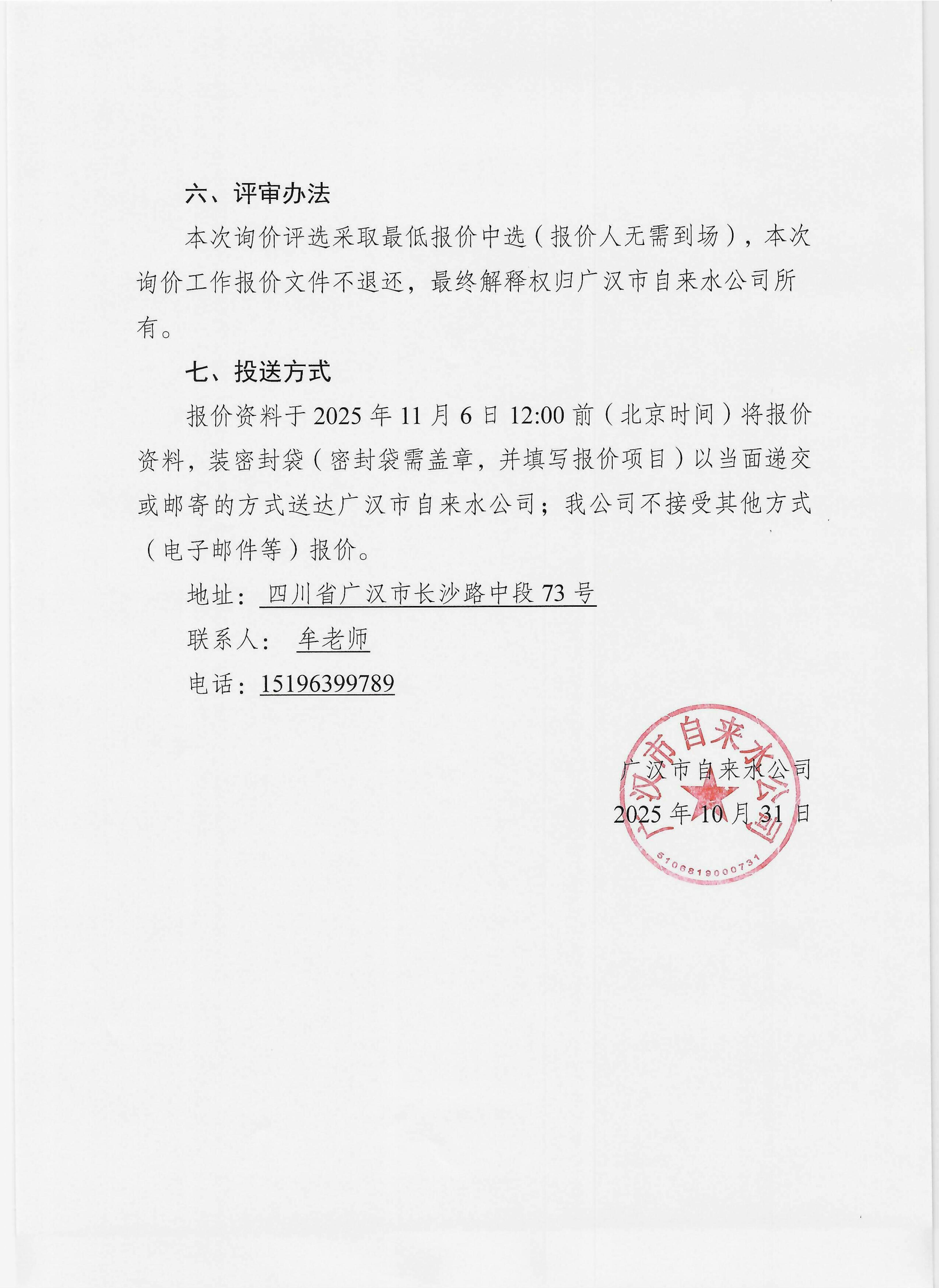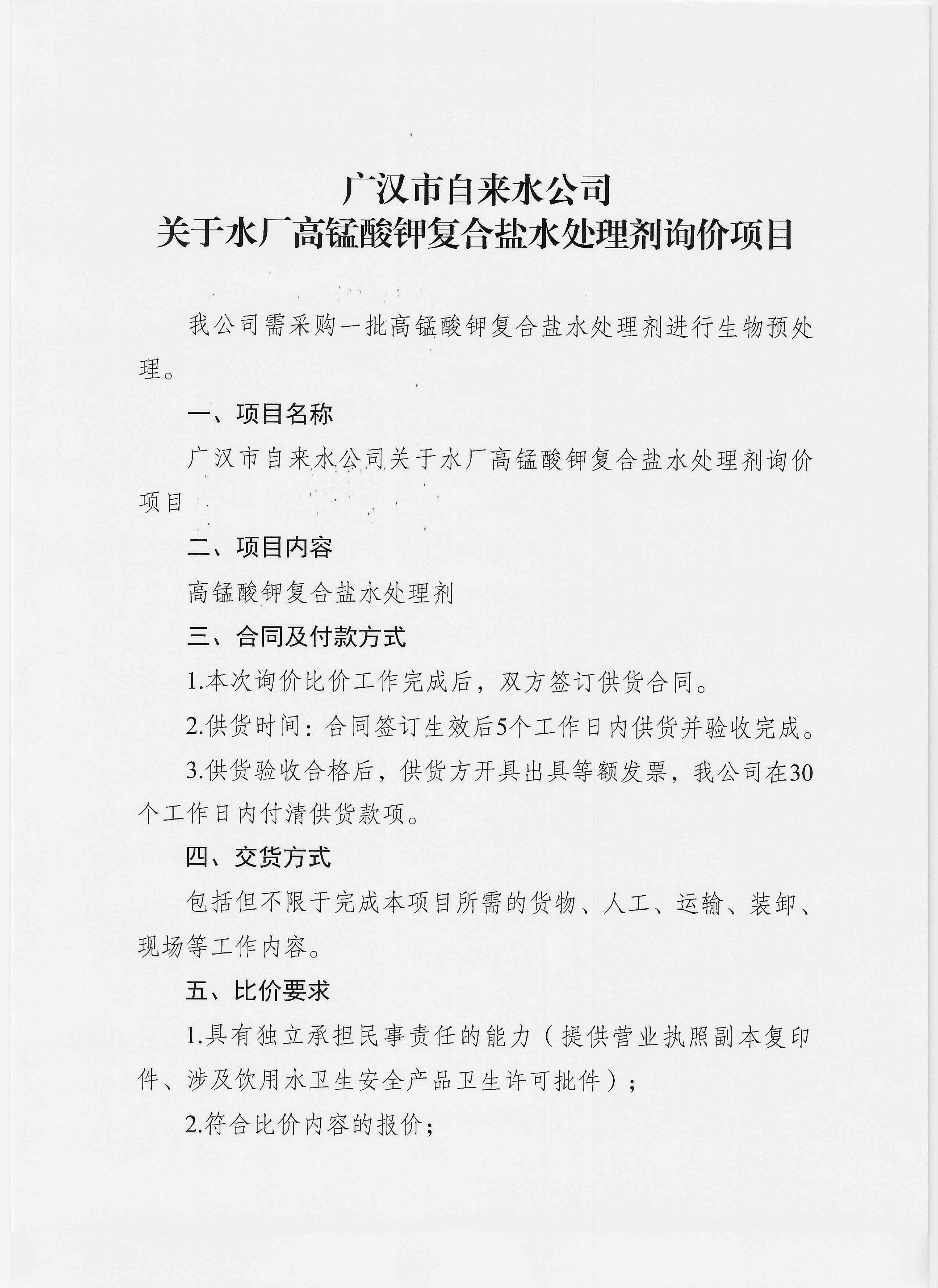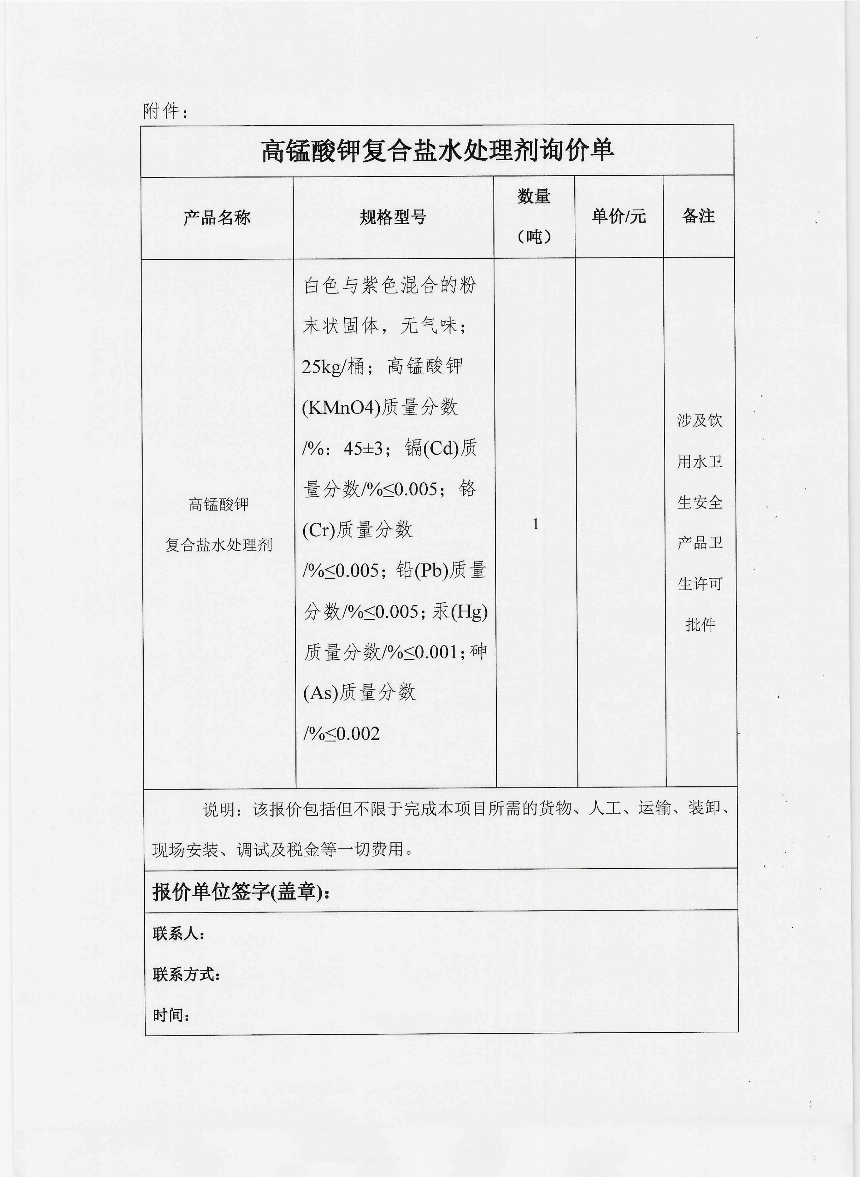 关于水厂高锰酸钾复合盐水处理剂询价项目