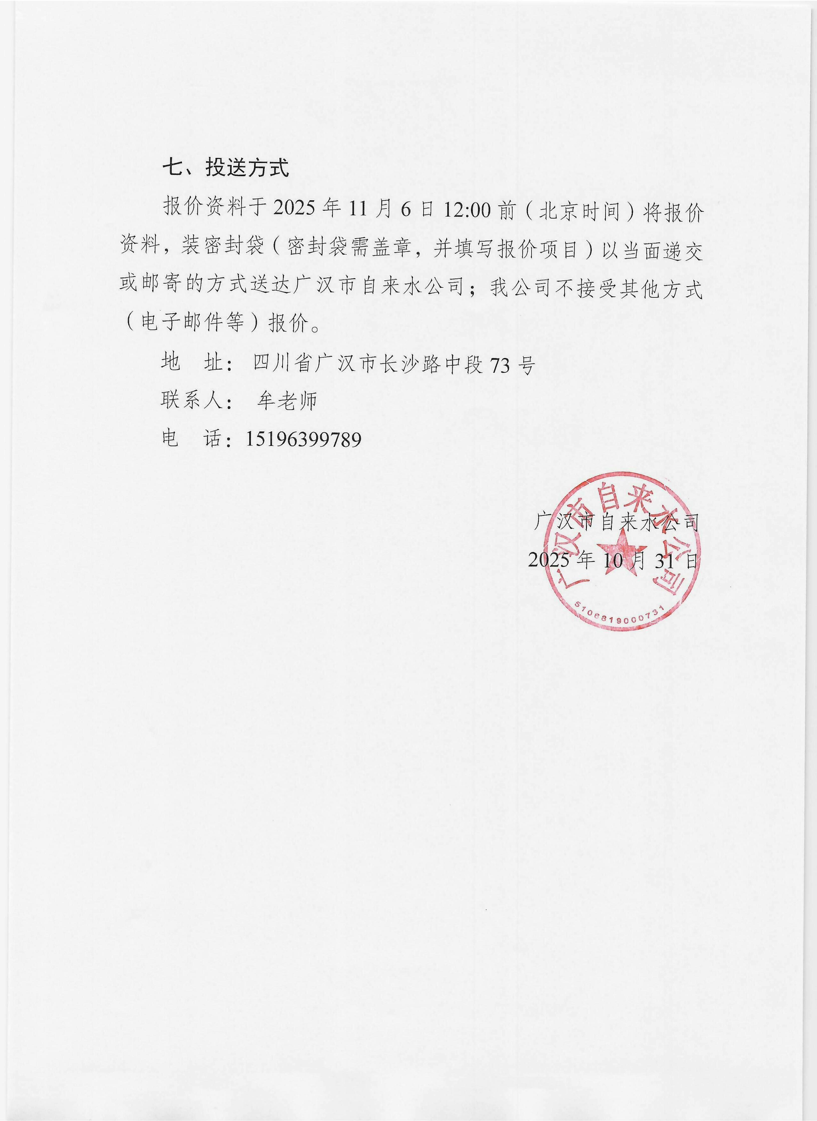 广汉市自来水公司关于采购广汉市自来水厂活性炭项目的询价函
