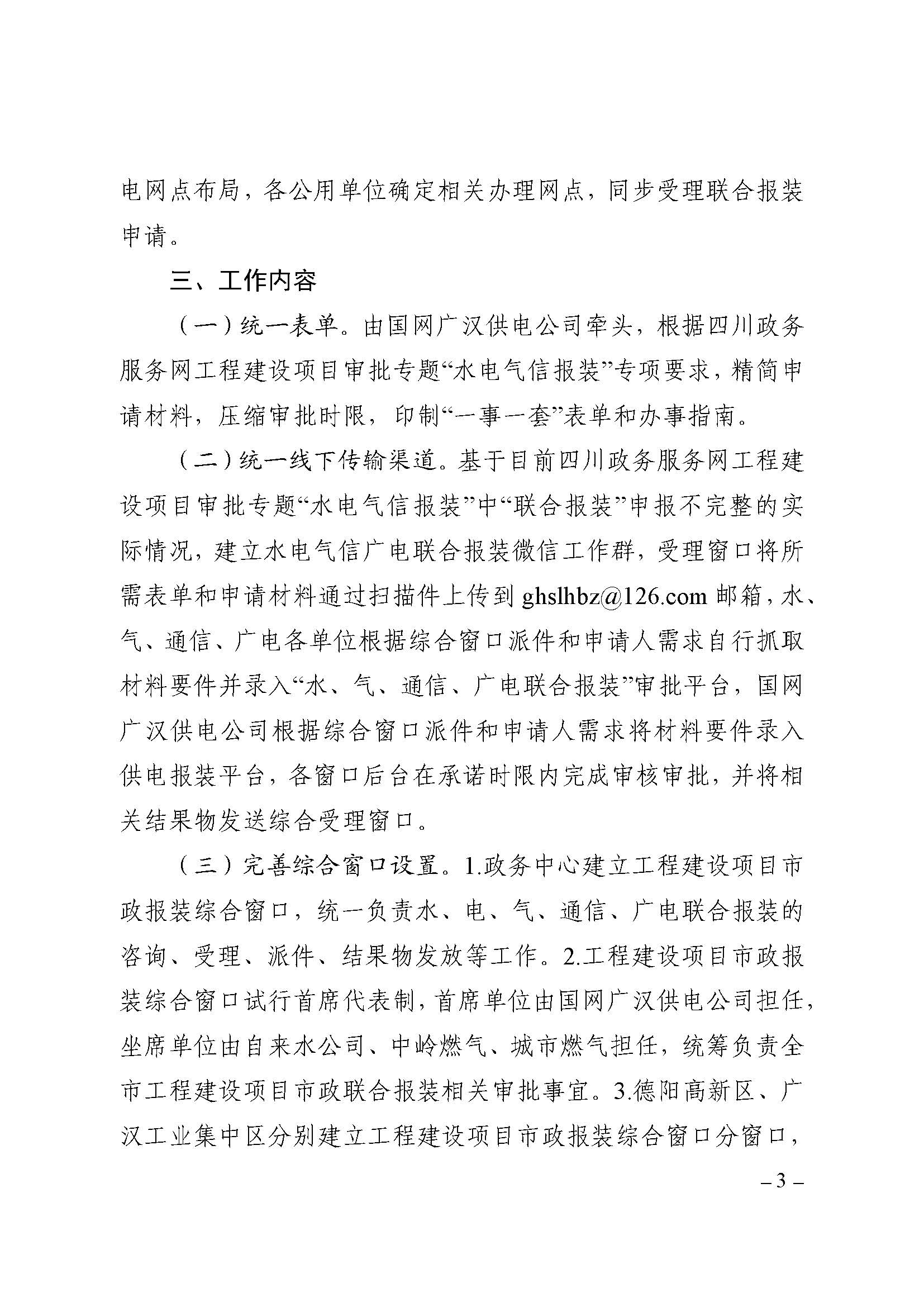 广汉市行政审批制度改革领导小组办公室关于全面实施工程建设项目水、电、气、通信、广电“联合报装”工作的通知