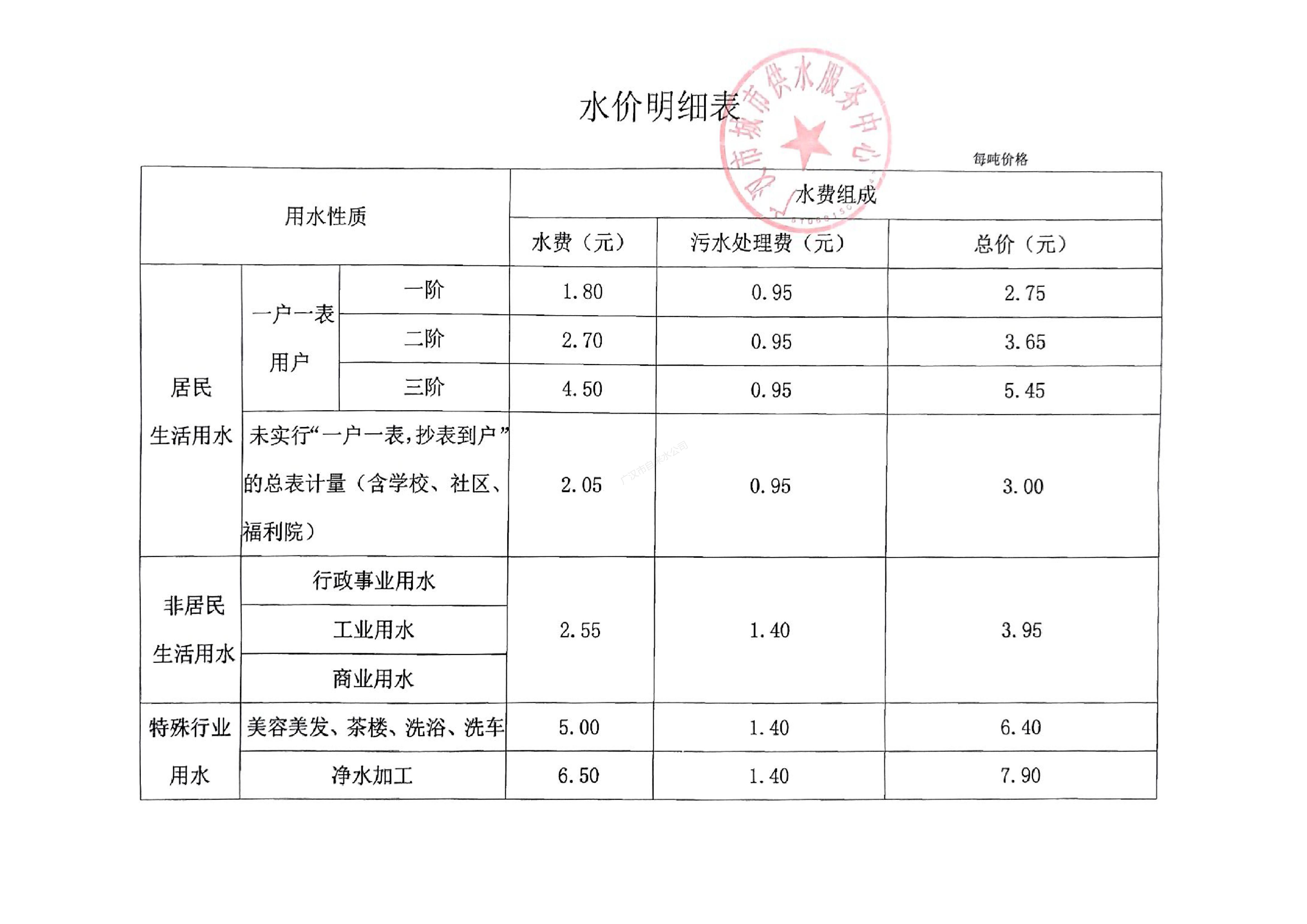 水价公告