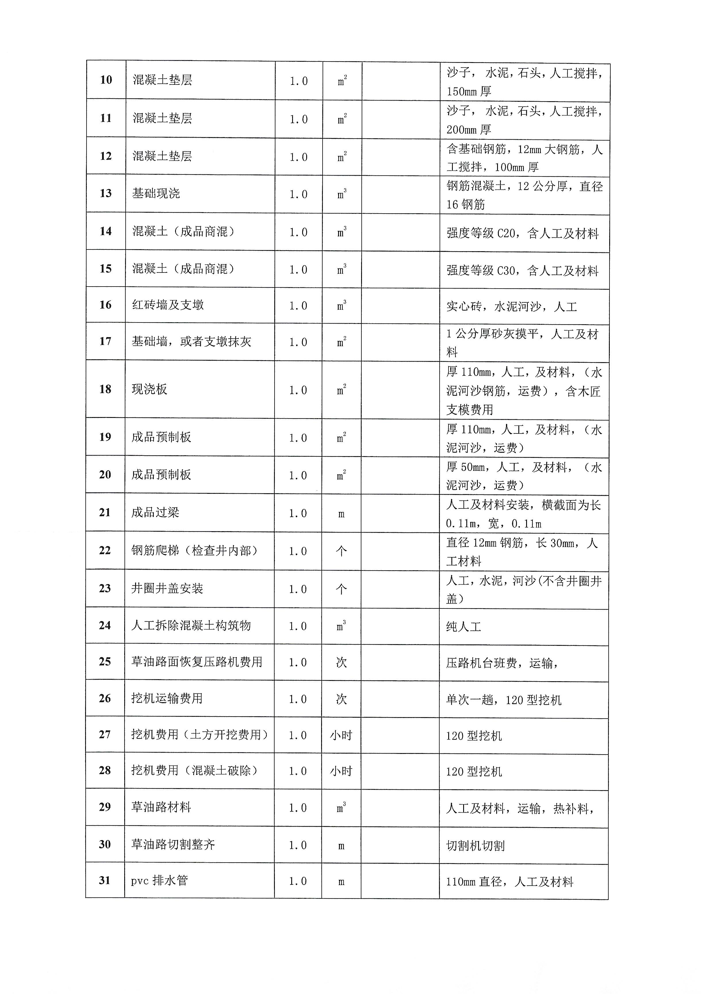 广汉市自来水公司构筑物砌筑拆除恢复工作询价单