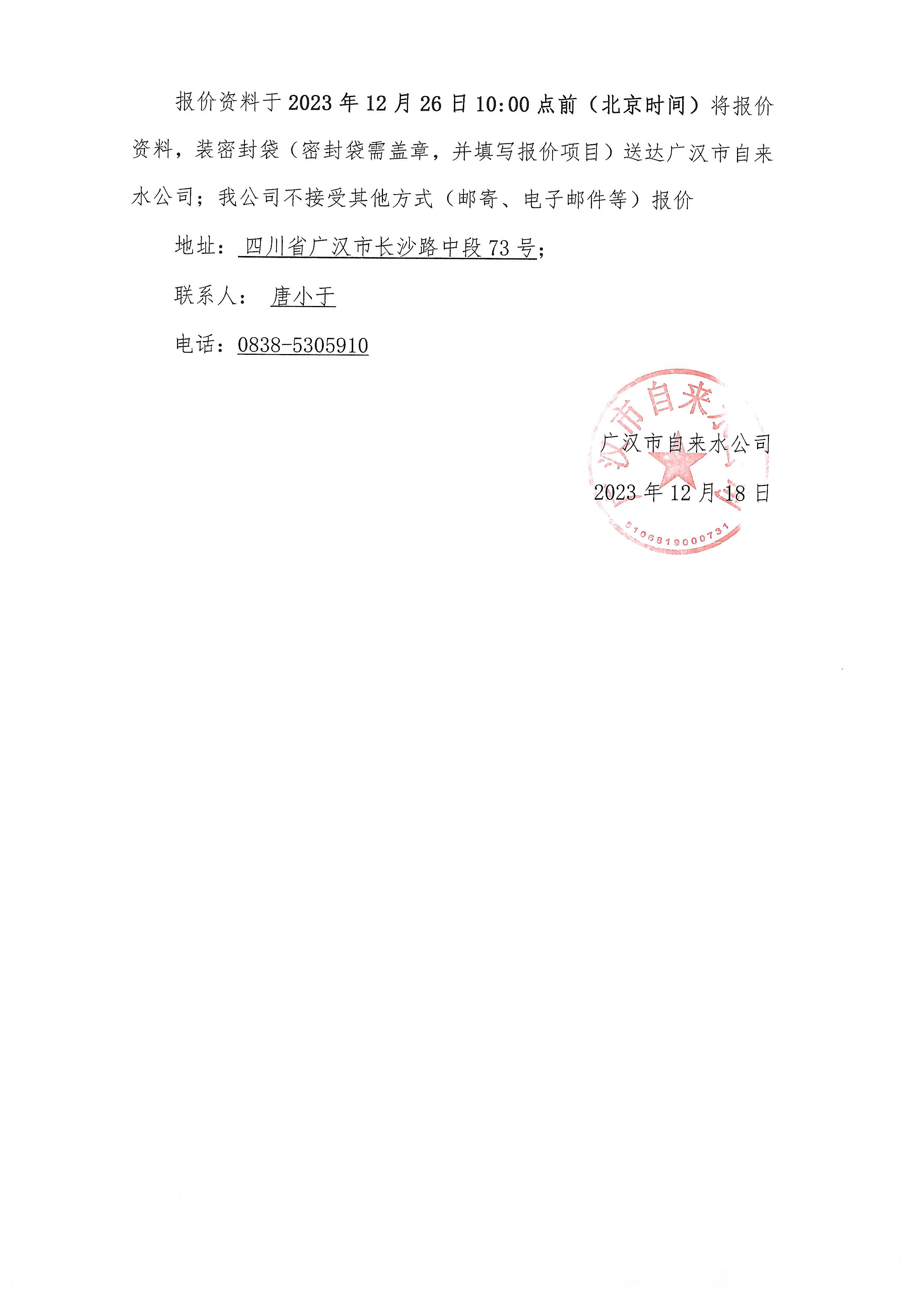 广汉市自来水公司零星安装辅材及余土外运和材料转运费用第二次询价单