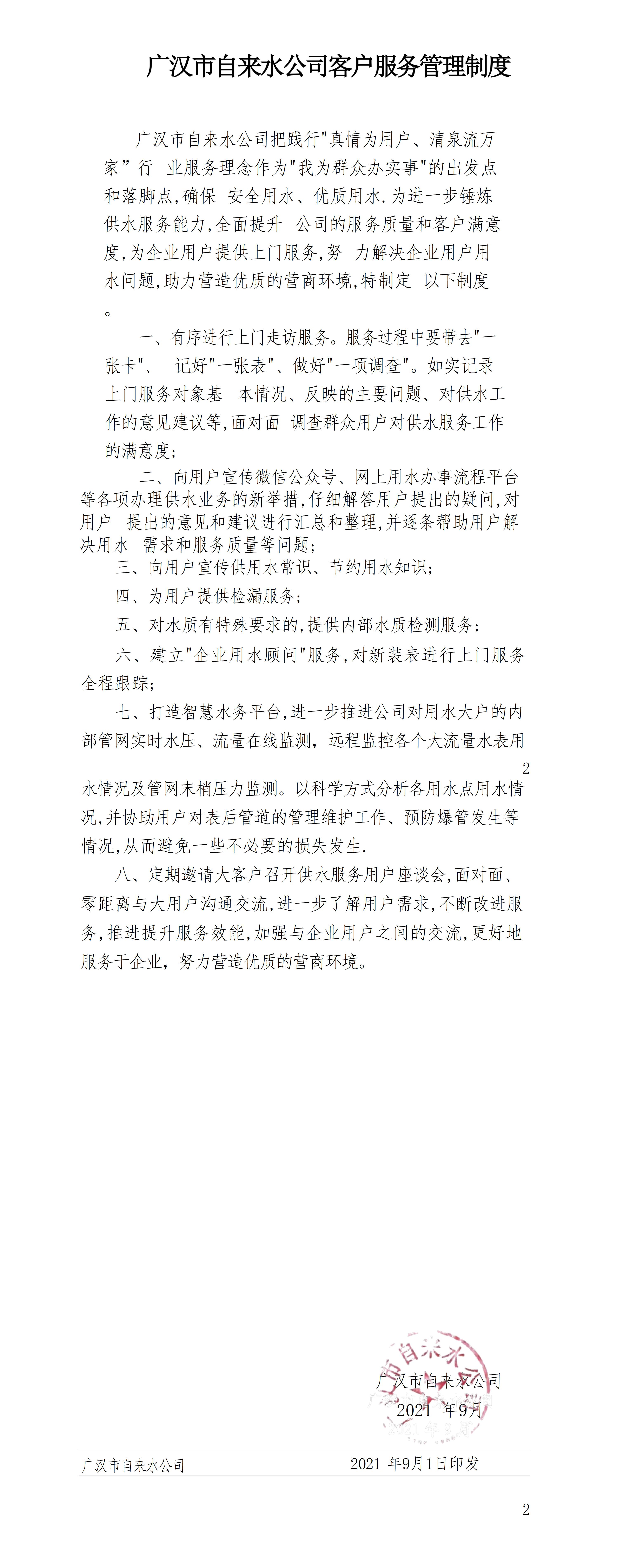 广汉市自来水公司客户服务管理制度