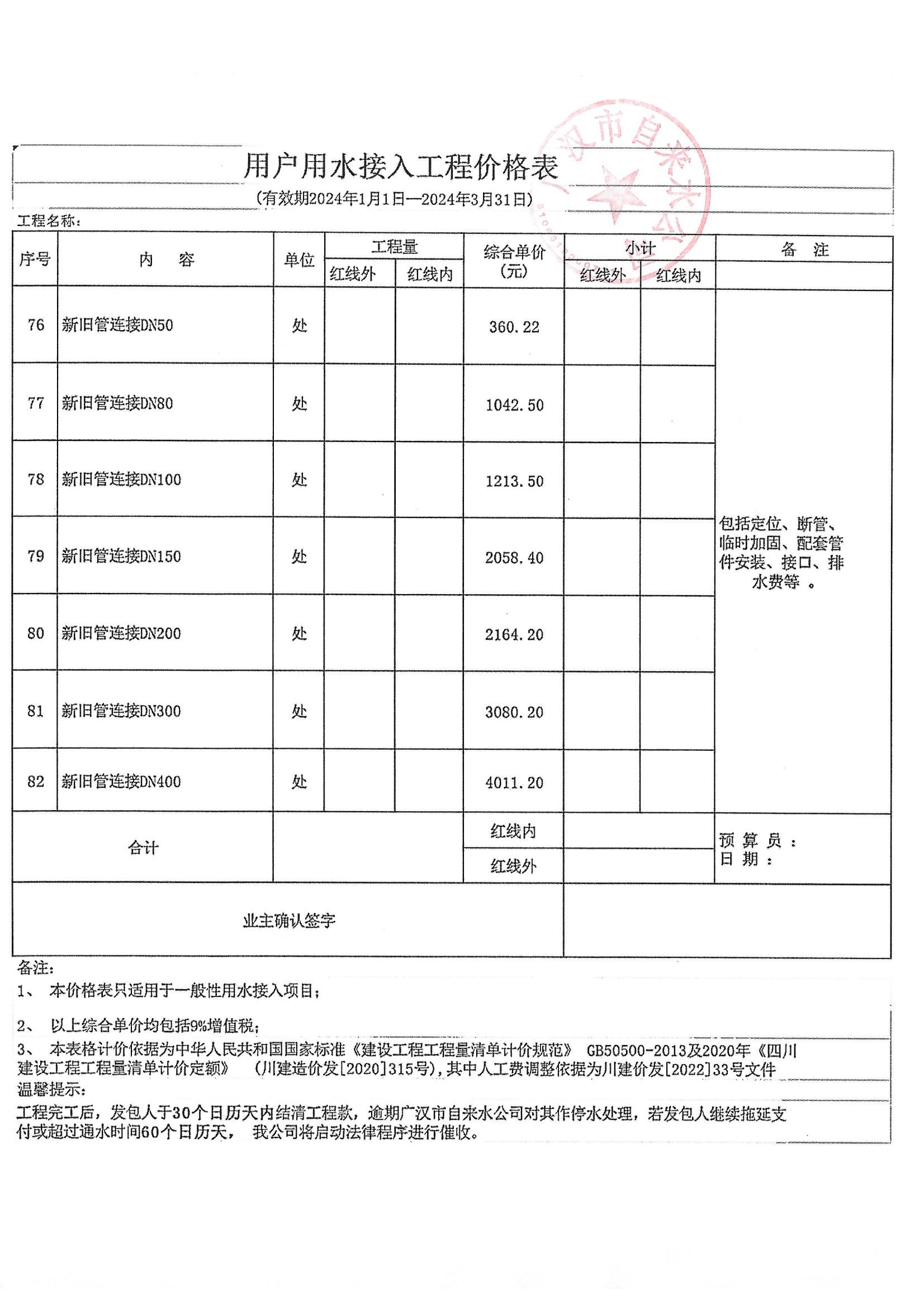 广汉市自来水公司供水延伸服务收费依据的情况说明