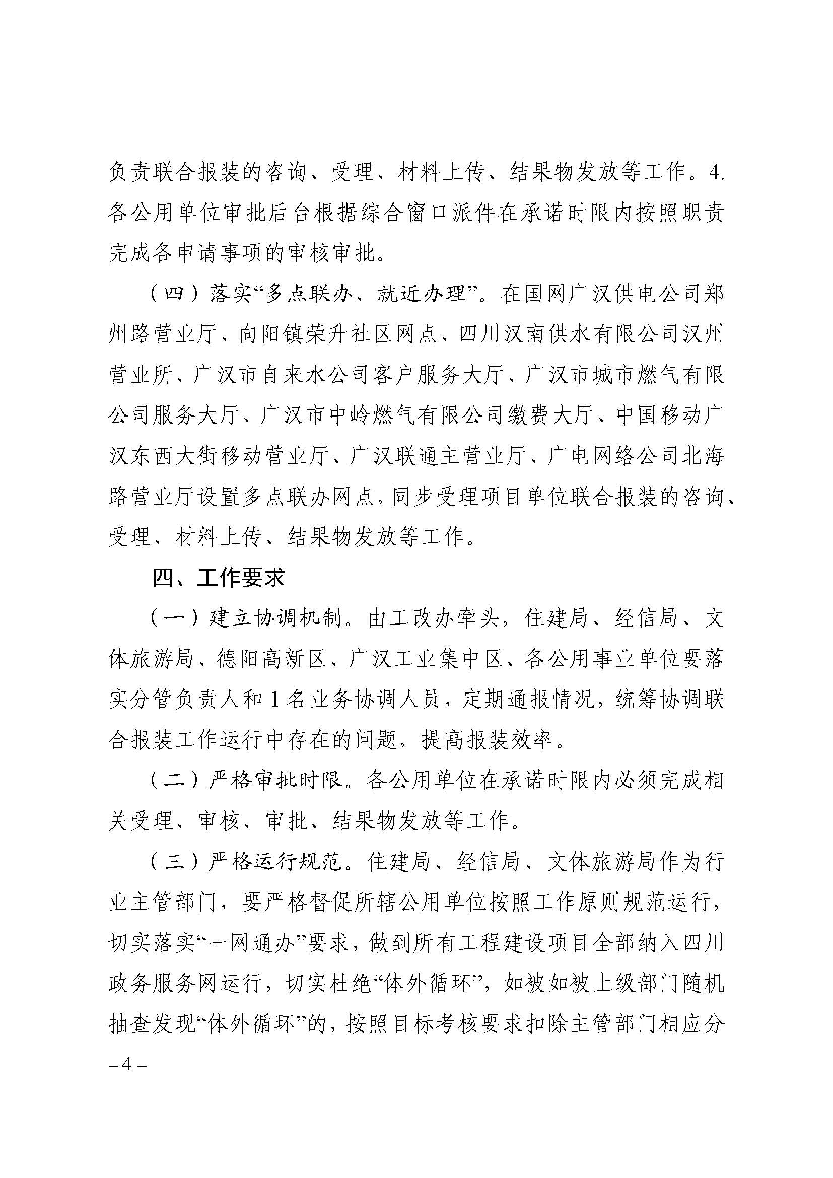 广汉市行政审批制度改革领导小组办公室关于全面实施工程建设项目水、电、气、通信、广电“联合报装”工作的通知